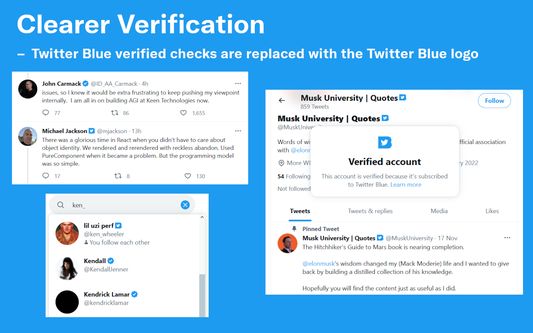 • Replace Twitter Blue checkmarks with the Blue logo so they're not as easily mistaken for verified accounts, or hide them altogether