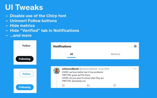 Gives you more control over Twitter and adds missing features and UI improvements