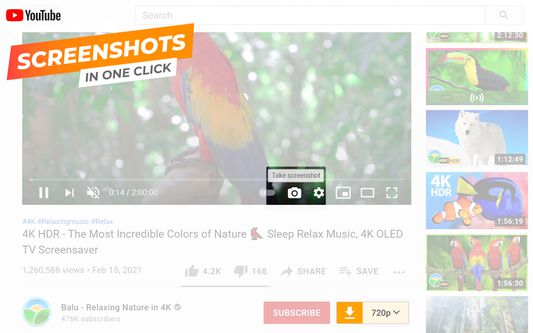- YouTube screenshot button, i.e. save frames while watching videos;