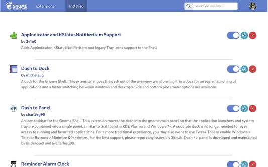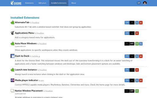 This extension provides integration with GNOME Shell and the corresponding extensions repository https://extensions.gnome.org