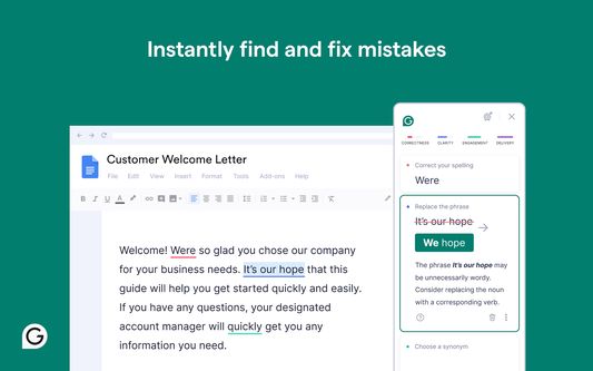 Grammarly integrates directly into your browser—no copying and pasting needed. Get writing support across: