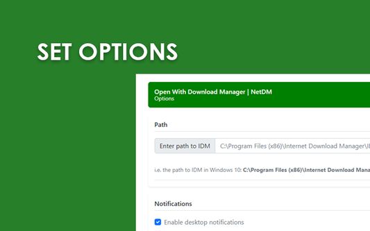 * Before using the add-on, please open the option’s page and make sure the path to IDM is correct based on your operating system.