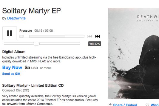 The slider takes some of the styles from Bandcamp's own player to fit the visual style so it should look fairly consistent. It's nothing too fancy, but it gets the job done. The volume slider handle is a bit more rounded to make it easier to discern it from the regular song progress bar.