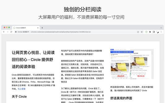 Too many ads are distracting, the color scheme is too ugly to look at, the font is too small to see clearly, the typography is too messy to find the text, does it really need to be so difficult to read the web? With just one click, Circle also provides you with the purest reading experience, escorting your better reading.