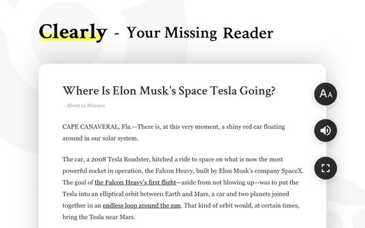Every day we spend hours reading articles and visiting websites. Reading is essential, and it needs to be simple. Therefore we create Clearly Reader. You can now focus on your favorite items without ads, floats, or any other irrelevant things bothering you anymore. Just one click, enjoy your reading.