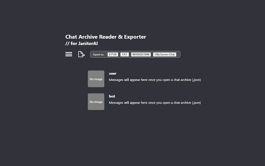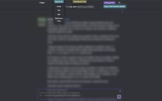 Add export buttons on JanitorAI. Download chats, read offline and export as epub, txt, md and SillyTavern chat in a single click.