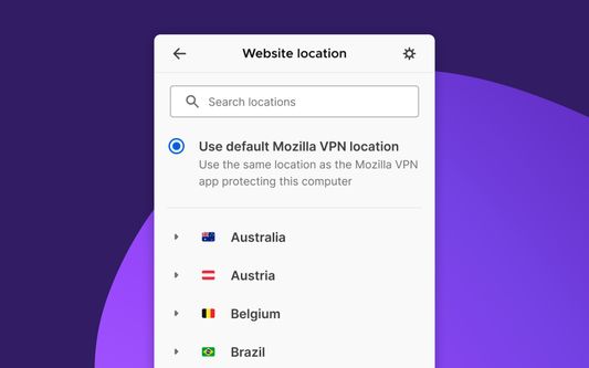 • Set-website-specific locations with the extension and see the web as you prefer. Maybe it’s news from London, sports from Sao Paulo, and shopping from Tokyo. With Mozilla VPN, you have 500 locations in 30+ countries to choose from.