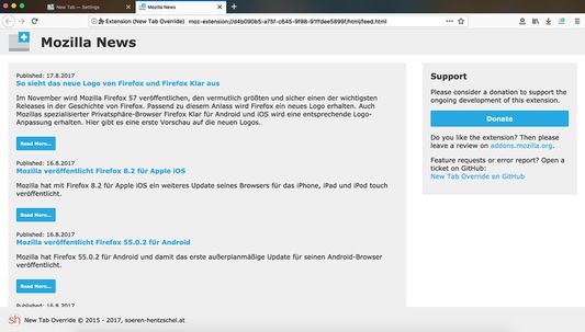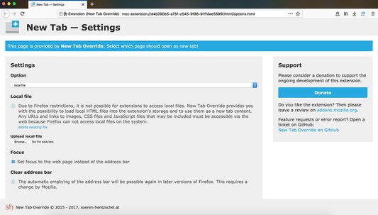 New Tab Override allows you to set the page that shows whenever you open a new tab.