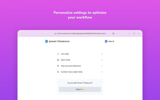Enhance your writing with the top-rated thesaurus extension from PowerThesaurus.org, popular online thesaurus trusted by millions of writers, students, and professionals.