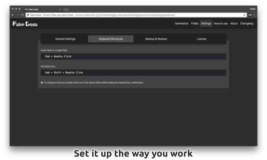 ✔️ No configuration or initial setup required, unless you want to. Just right click on any input field and choose what type of data to insert.