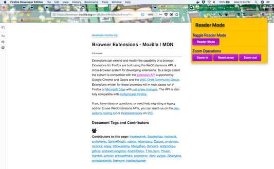 A beautiful popup shows Reader Mode toggle feature and other additional zoom features.