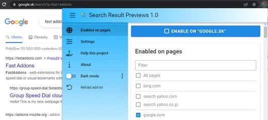 This addon shows you page preview 🖼️ next to each search result! 🔍 PRO version shows also PageRank 📊 value for each page!