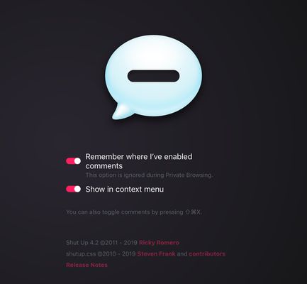 Shut Up hides comments on most websites. You can show them on your favorite sites with a click of a button, and it'll remember that for next time.