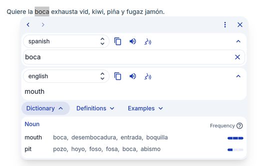 - Dictionary: definitions and examples for single words or phrases