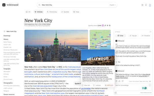 By leveraging cutting-edge AI technologies, Wikiwand helps users quickly grasp key points and related topics without the need to sift through lengthy articles.