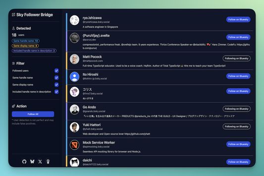 Instantly find and follow the same users from your Twitter follower on Bluesky.