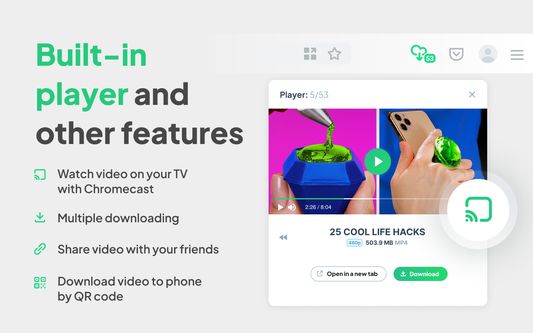 Laajennuksen avulla voit ladata videoita SD-, HD-, FULL HD-, 2K- ja 4K-muodoissa monilta suosituilta videosivustoilta!