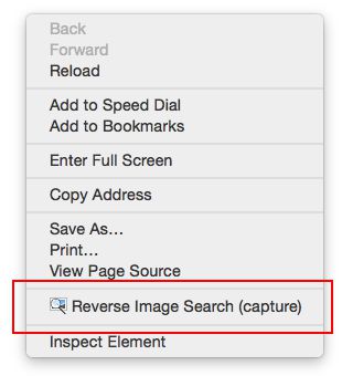 In most cases, images are embedded in the background page and hence it is not straightforward to find the actual source of them to be passed to a reverse image search engine. Also, the image you are looking for maybe just part of a video stream. This extension solves these problems by providing a capturing tool in the right-click context menu. Simply select the item and capture a portion of the screen. The captured image is automatically sent to either "TinEye" or "Google Images" search engine, and after a successful upload, a new page with the matching results is displayed.
