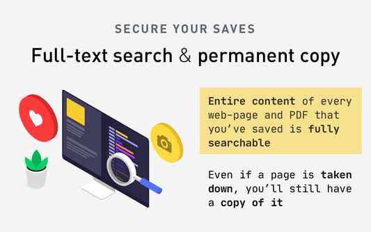 Entire content of every web-page and PDF that youâve saved is fully searchable.