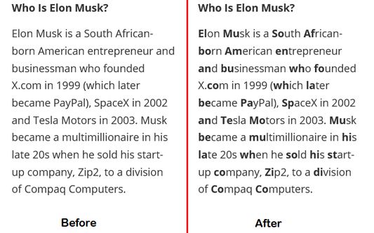 SmartReader or Bionic Reader changes a web page to make it more readable by bolding the beginning of a word (like bionic reading).