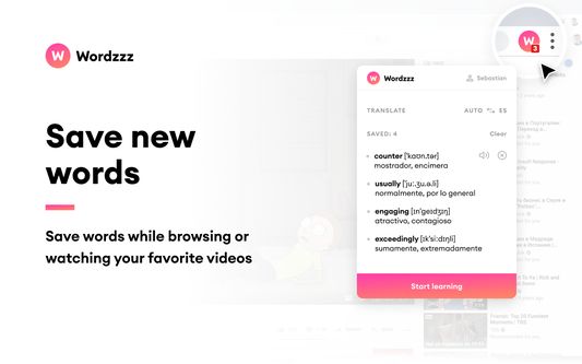 The Wordzzz extension is your ultimate language learning companion. It seamlessly analyzes subtitles within your YouTube and Netflix videos, allowing you to effortlessly enhance your language skills. Simply hover over any word, and the video pauses, giving you the opportunity to click on the word and view its translation instantly. You can also translate words while browsing by double-clicking them.