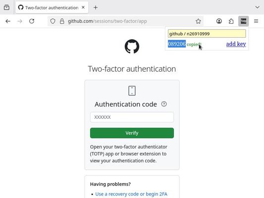 Note for Linux/X11 users: Since their half-fix to the exploitable pastejack bug that I have reported, it's no longer possible to copy the totp code to the primary selection automatically upon it being generated. If you still want to paste it with a simple middle-button click, just click once more on the totp code when you see the "copied (for ctrl-V)" message. Sorry for that.