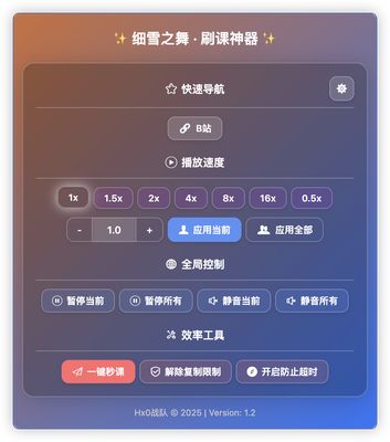 细雪之舞 · 刷课神器 是一款专为在线课程平台打造的高效刷课工具,界面精美、功能强大,助你轻松掌控学习节奏,高效完成任务。