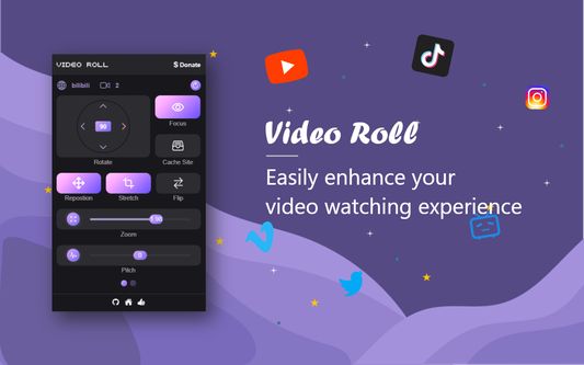 Video Roll is a web extension that helps you rotate, stretch, zoom, reposition, flip, tune, volume++, playback, screenshot, focus and filter HTML5 videos in any web pages. Works great on most sites(Youtube™/Bilibili/Vimeo/TikTok/Twitter, etc).Support the same-origin iframe's video(dailymotion.com).Support shortcut key:Ctrl+Up/Right/Down/Left/B.We provide an excellent memory system to help the next time you enter the website to take effect directly.