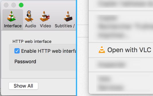 Add a content menu Open with VLC on audio / video links. Links must contains file extensions (.mp4, .mkv, ...) Prerequisite : - VLC must be opened - HTTP web interface must be enabled (Settings > Interface > HTTP web interface)