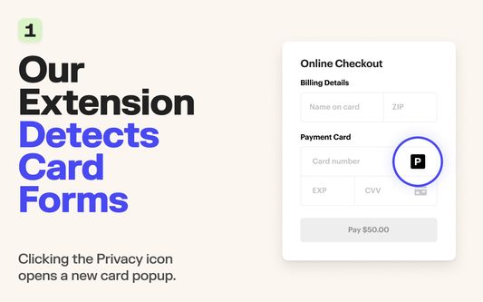 Privacy's Firefox add-on allows you to generate a new virtual card number with 1-click on any checkout page. Keep your payment info safe from data breaches, shady merchants, and sneaky subscription billing.