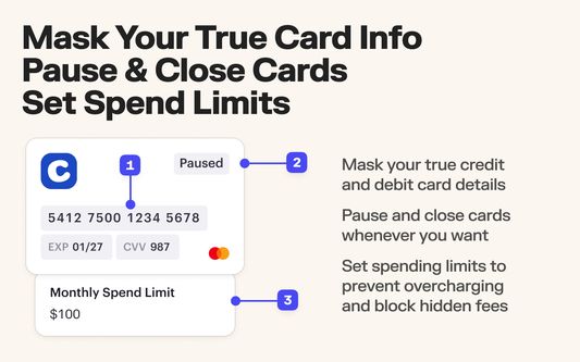 Pause and close cards whenever you want, giving you complete control over who can charge your card and when.