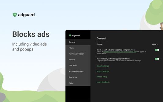 AdGuard ad blocker effectively blocks all types of ads on all web pages, even on Facebook, YouTube, and others!