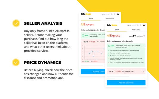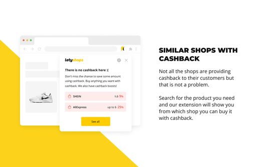Uzyskaj cashback za każdym razem, gdy robisz zakupy w Letyshops! Cashback serwis LetyShops zapewnia jeszcze więcej korzyści i przyjemności z każdego zakupu w AliExpress oraz innych 2000 sklepach internetowych!