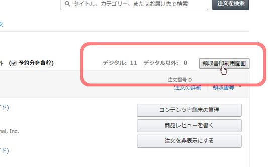 Kindleを始めとしたデジタルコンテンツの領収書を得ようとすると、注文履歴等から1件ずつ選択して個別に印刷する必要があり、多数印刷しようとするとかなり手間がかかります。