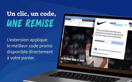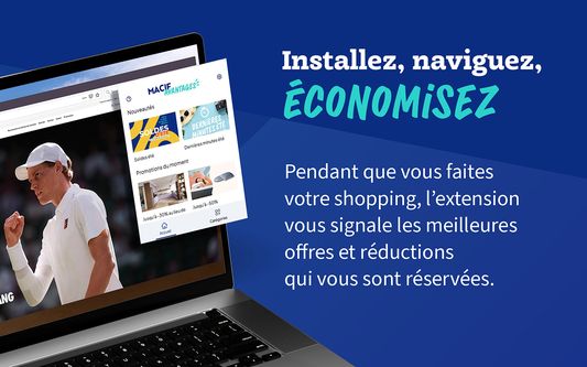 Ajoutez l’extension Macif Avantages à votre navigateur en quelques clics et économisez sur vos achats. Faites votre shopping comme d’habitude, on s’occupe de vous proposer les meilleures remises du moment !