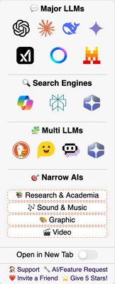 Ultimate AI assistant! Access all AIs anywhere and boost your productivity: ChatGPT, Gemini, DeepSeek, Grok, Copilot, Claude, Llama, Qwen, Mistral AI, Perplexity, Poe, Narrow AIs and much MORE! 💖 No user information is collected by the developer
