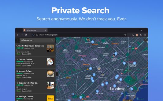 Мы считаем, что лучший способ защитить личную информацию от хакеров, мошенников и навязчивых компаний — полностью пресечь сбор данных. Вот почему миллионы людей выбирают DuckDuckGo вместо других расширений браузера для защиты поиска и просмотра сайтов. Наша встроенная поисковая система работает точно так же, как Google, только не отслеживает ваши запросы. А попытки других компаний заполучить ваши данные пресекаются функциями защиты для браузера, такими как блокировка рекламных трекеров и куки-файлов. К тому же наше расширение предоставляется бесплатно: мы получаем доход от показа рекламных объявлений, а не от продажи ваших персональных данных. Поэтому если вы хотите, чтобы ваша личная информация вновь принадлежала только вам, выбирайте расширение браузера, созданное для защиты, а не для сбора данных.
