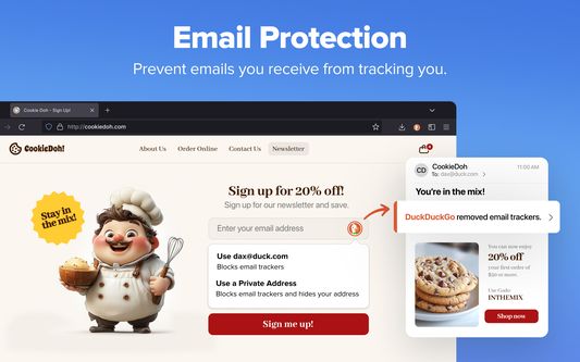 Защита электронной почты (дополнительно): функция Email Protection блокирует большинство почтовых трекеров и скрывает ваш настоящий ящик за адресами на домене @duck.com.