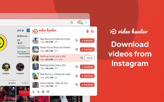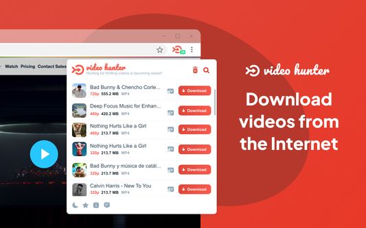 Скачать видео и музыку легко с популярных платформ, таких как YouTube, Vimeo, TikTok, Facebook, Instagram, OnlyFans, Netflix, Twitter, Udemy, Coursera и Pornhub с помощью расширения Video Hunter.