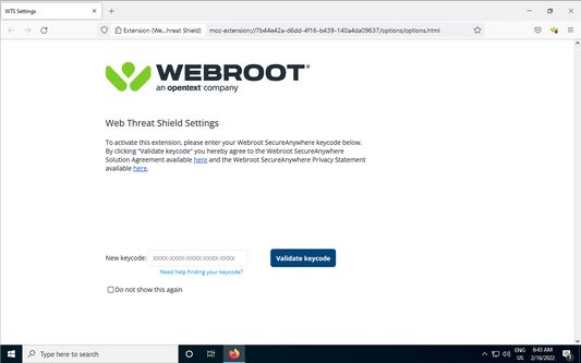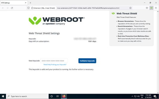 Код можно получить на сайте www.webroot.com.