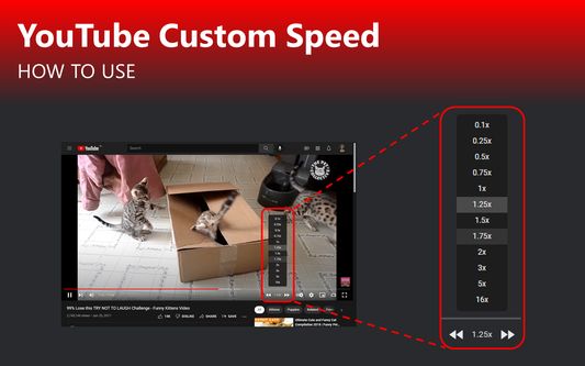 Youtube Custom Speed lets you play any Youtube video at any speed you like, from 0.0125x to 16x!