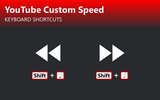 Use the options menu to set your preferred playback rate values. Then, change the speed using buttons at the bottom of the video. It also cooperates with the default Youtube keyboard shortcuts - Shift + , and Shift + .