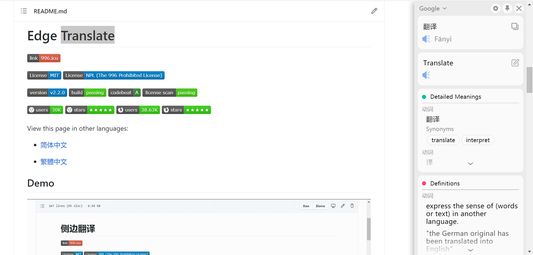 Edge Translate is a simple and practical translation plugin that supports mainstream browsers such as Chrome, Firefox, and 360 Secure Browser . The main purpose of our plugin is to assist users in reading foreign literature. To this end, we have followed the principle of the user's reading experience first, and made the following efforts: