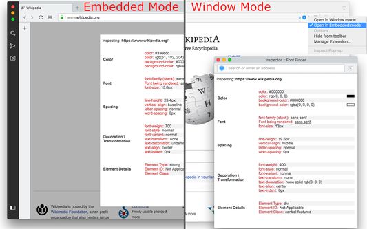 "Font Finder (revived)" is WebExtension implementation of the XUL "FontFinder". This extension is created for designers, developers and typographers. It allows a user to analyze the font information of any element on a page, copy any piece(s) of that information to the clipboard.