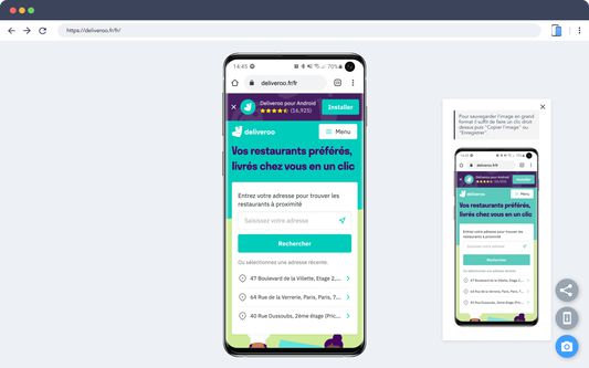 Il est également possible de faire une capture du smartphone en PNG transparent pour l'insérer dans un email, présentation ou autre.
