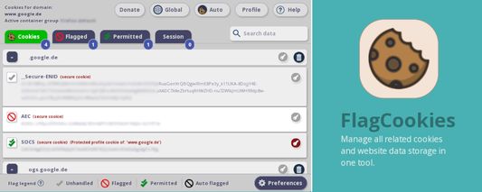 * **Flag cookies** either to be explicitly **deleted** even without *global* or *auto flag* mode or set them to be **permitted** or protected from removal by *global* or *auto flag* modes