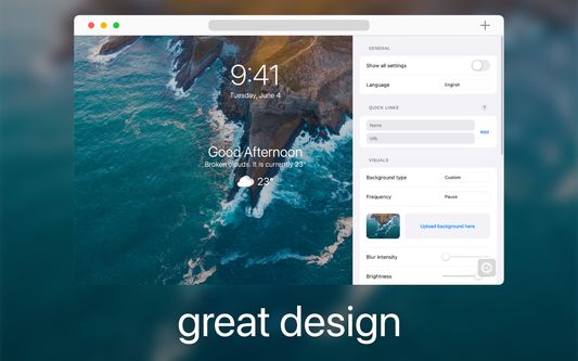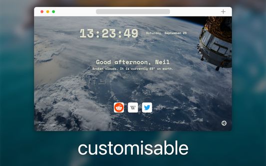Mỗi khi bạn mở một cửa sổ hoặc tab mới, bạn sẽ được chào đón bởi trang có giao diện tối giản này, giúp bạn cảm thấy bình yên và tăng năng suất. Nhờ vào những hình nền chất lượng cao độ phân giải 4K tuyệt đẹp, thay đổi theo tâm trạng của ngày, các tab mới của bạn sẽ luôn cảm thấy mới mẻ.