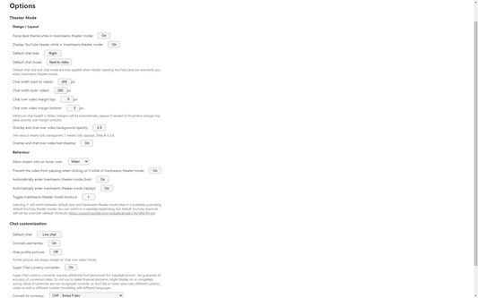 Improves the viewing experience of YouTube livestreams and premiers with an enhanced theater mode, including features like moving chat to the left side or on top of the video.