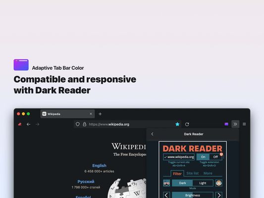 当您浏览网页时,这个插件将会动态更新 Firefox 背景色,使浏览器主题与正在浏览的网页融为一体——正如 macOS Safari 修改其标签栏颜色一样。