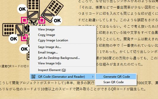 将当前页面地址、选中的文本或链接等生成二维码,也可以识别网页中的二维码图片(支持识别中文)。